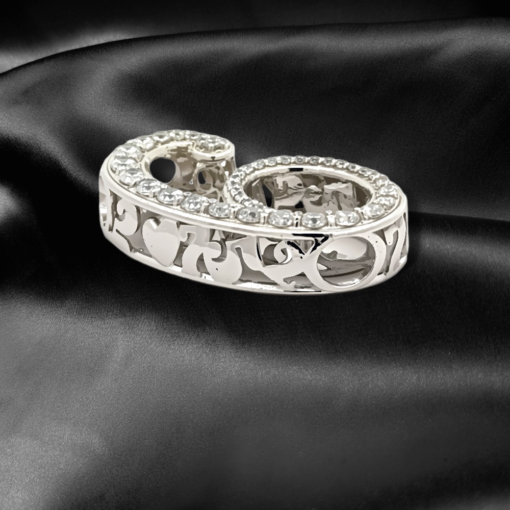 ペンダントによくある平面なデザインではなく、立体に制作したペンダントで横から見ても様々な数字や記号が入っています。