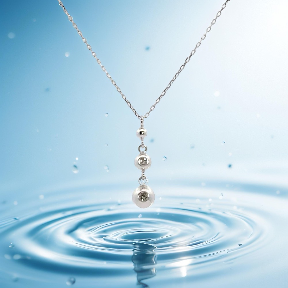 澄み切った水面に優しく波紋が広がるように、デコルテにそっと寄り添うK18ホワイトゴールドネックレス。繊細なチェーンの先に、2石のダイヤモンドが瑞々しい滴のように連なり、揺れるたびにまばゆい輝きを放ちます。