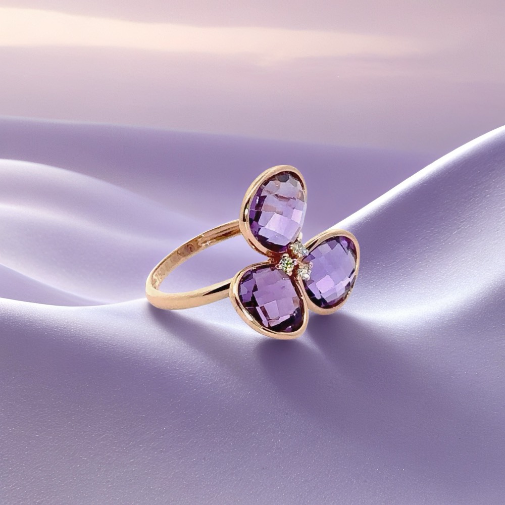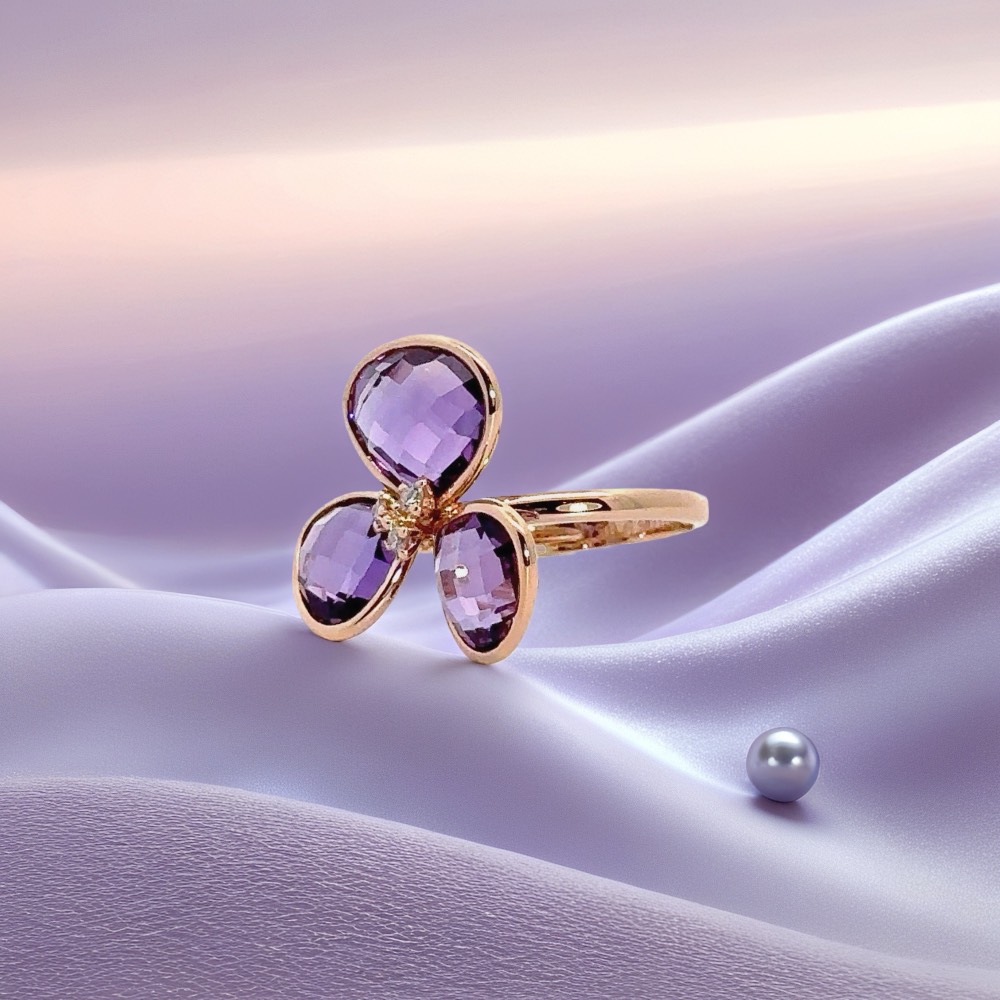 指先に華やかさと気品を添える、K18ピンクゴールドのアメジストリング。