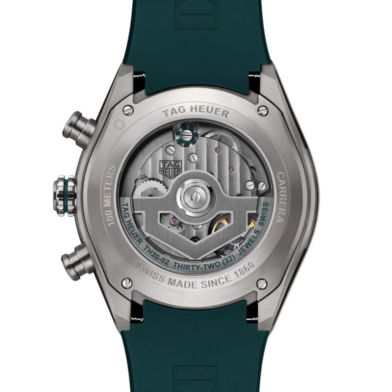 堅牢性とエレガンスをバランスよく備えた、グレード2チタン製の44mmサイズのウォッチ。バイカラーの固定式セラミック製ベゼルには、GMT機能が付いた24時間スケールが備えられています。その中心で鼓動を刻むのは、TH20-02 ムーブメント。約80時間のパワーリザーブを誇る、革新的自社製GMTクロノグラフキャリバーです。ケースバックにあしらわれたビクトリーリースのシンボルが、タグ・ホイヤーがもつモータースポーツの勝利のレガシーを讃えています。